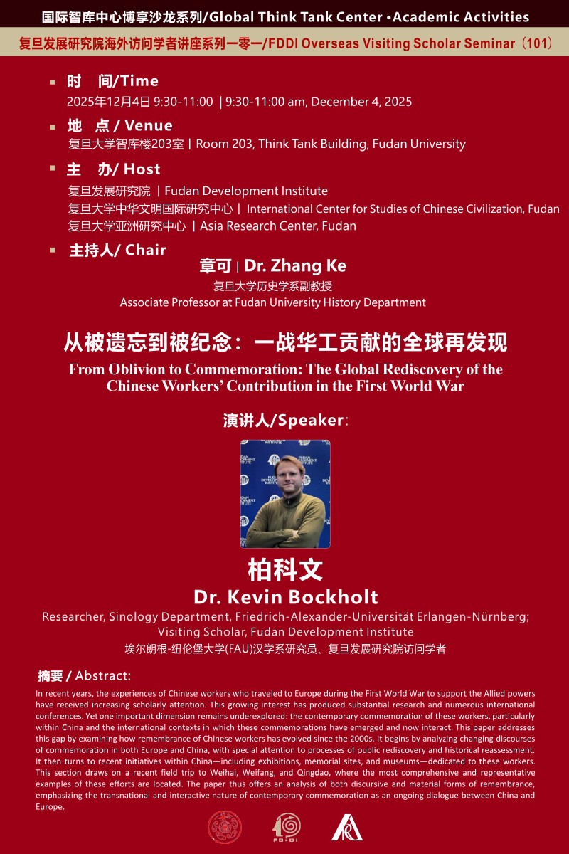 Kevin Bockholt 埃尔朗根-纽伦堡大学(FAU)汉学系研究员、复旦发展研究院访问学者、复旦大学中华文明国际研究中心访问学者
